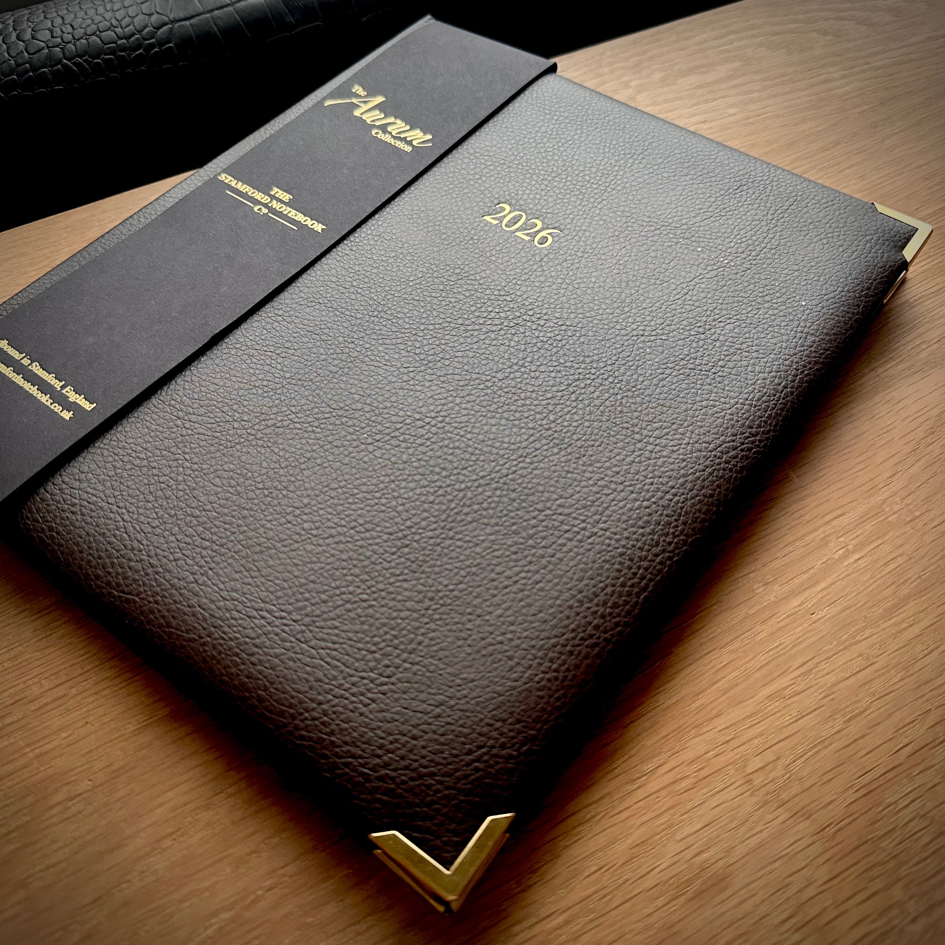 Designed to elevate any desk, the Aurum Leather Appointment Desk Diary is the definition of understated luxury. Wrapped in a supple, lightly cushioned grained leather cover and finished with elegant gold corners, it makes a striking first impression. Inside, you’ll find our sumptuous British-milled paper, expertly created for its fountain-pen-friendly quality and exquisite gilded edges for a flawless finish. Each diary is hand-bound with lay-flat binding to ensure exceptional writing comfort, and finished with a grosgrain ribbon marker and a gold-foil embossed logo on the back cover. Meticulously crafted with every detail, this top-drawer diary is the ultimate writing indulgence. Slipcase & Tray Personalise your diary The cost of personalisation starts at £7.00 per diary. Buying this as a gift? |